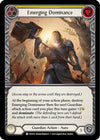(Auras stay in the arena until they are destroyed.) At the beginning of your action phase, destroy Emerging Dominance then the next Guardian attack action card you play this turn gains +2 [Power] and dominate.
